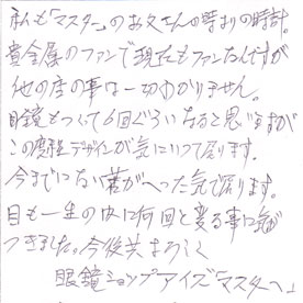 EYES(アイズ)で、眼鏡をご購入頂いたかた方々からの嬉しいお声をご紹介します。ありがとうございます。